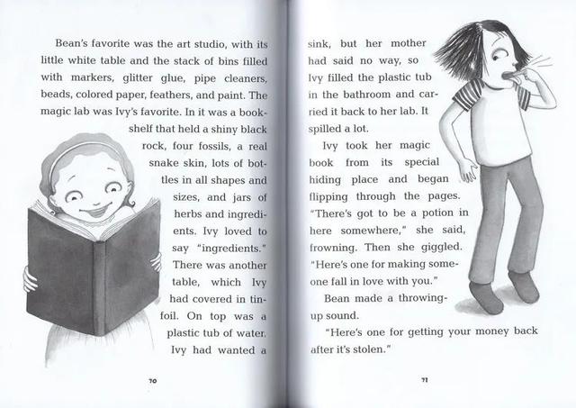 这套书的作者Annie Barrows非常擅长用幽默的对话,活泼的叙事,并大量采用孩子们的日常对话,让孩子们有身临其境之感。加上插画作者Sophie Blackall的惟妙惟肖插画,让两个女孩儿的性格跃然纸上。