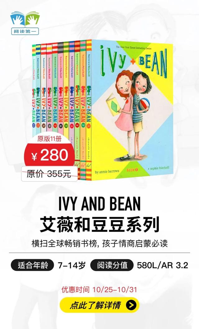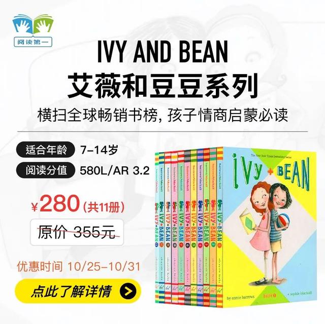 这次阅读第一推荐的是来自Chronicle出版社的,Ivy and Bean 原版11册套装,图书的设计非常精美。市场价是355元,阅读第一优惠价是280元包邮,我们为大家争取到了少量存货,手慢无。且赠送音频,购买后联系客服领取。