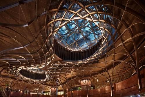 中庭拱顶的灵感源自古典拱顶及自然形态,将阳光温柔发散至每个角落。错综复杂的枝干变幻出灵动莫测的光线,为中庭融入悦目的光影变奏。