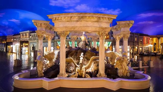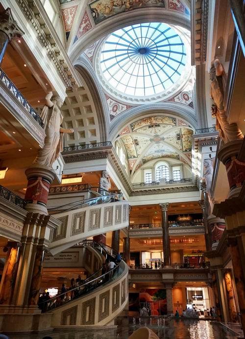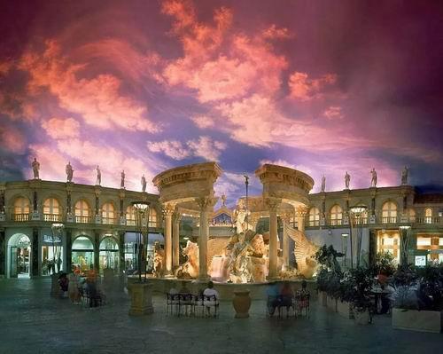 恺撒皇宫酒店里的古罗马购物中心建于1992年,占地526,000平方英尺。是美国拉斯维加斯第一间以观光景点形态设计的高级精品商场。