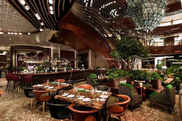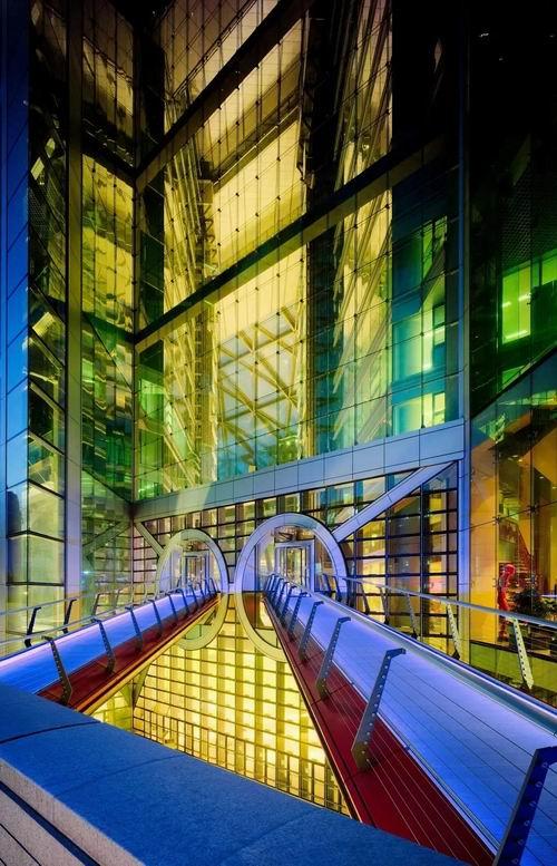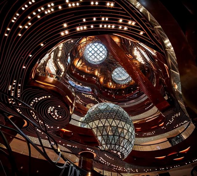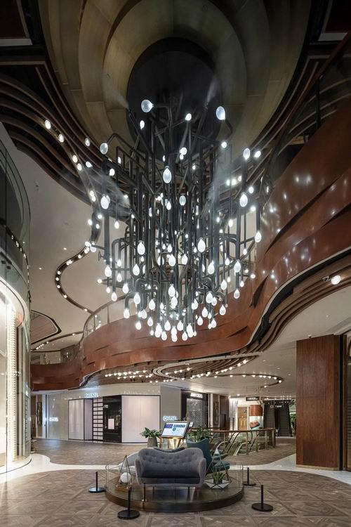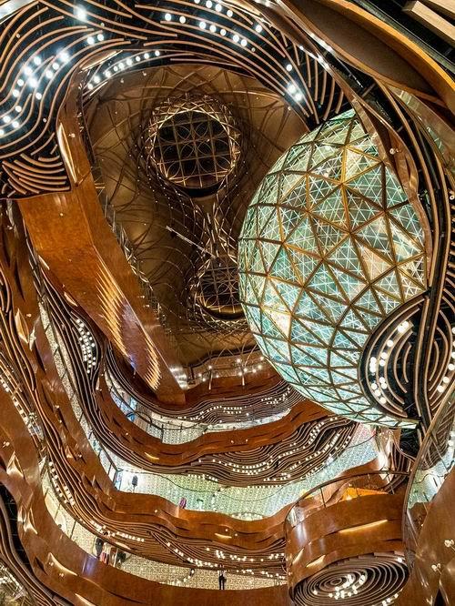 巧思的室内设计,夸张的雕塑作品,都让人过目不忘。抬头望向高大的玻璃幕墙,兼具现代西方艺术与传统风韵的设计奇妙结合,令人称奇。
