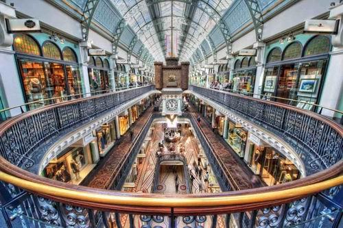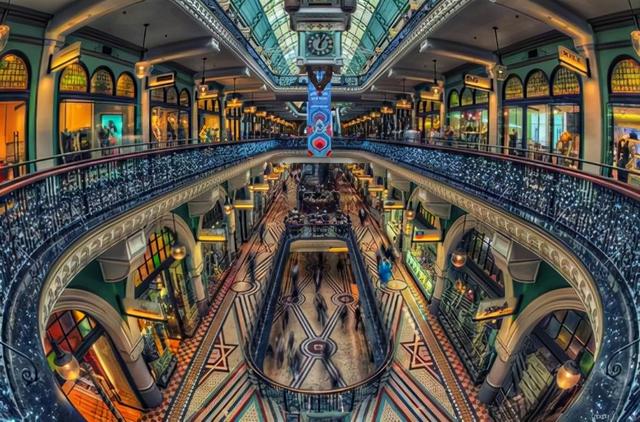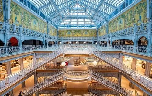 室内的玻璃圆顶、彩绘花窗、旋转楼梯,以及拱门、柱子、栏杆和图案复杂的地砖,全部保持之前原貌,被誉为「世界最美的购物中心」。