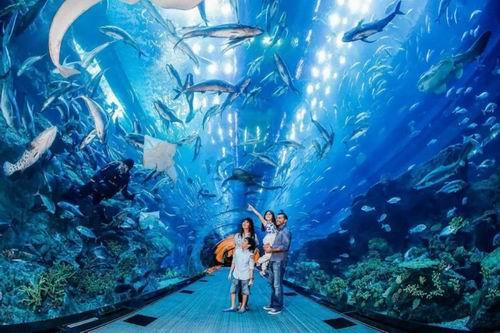 迪拜购物中心有世界最大的水族馆,最大的黄金市场,奥运比赛规模的冰场,以及6层楼高的巨幅屏幕影院,还有探险公园,沙漠喷泉等等。