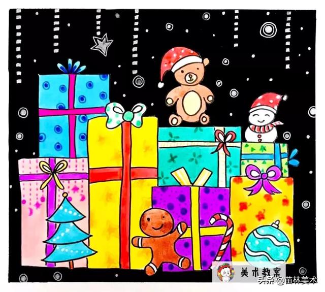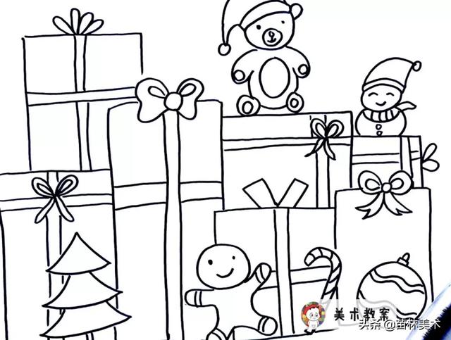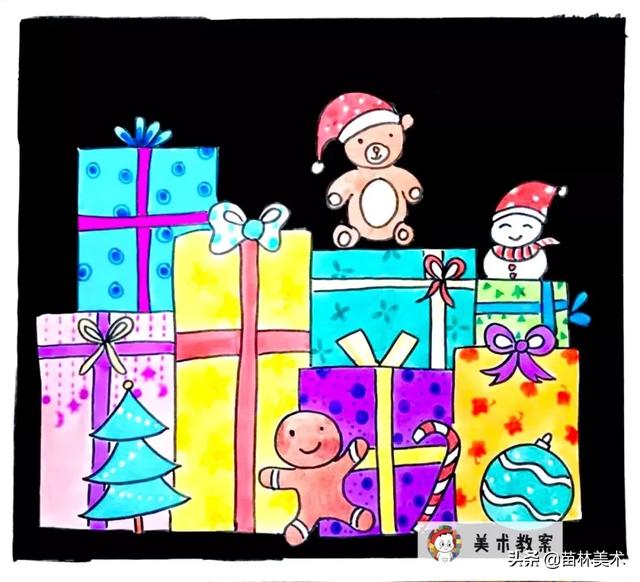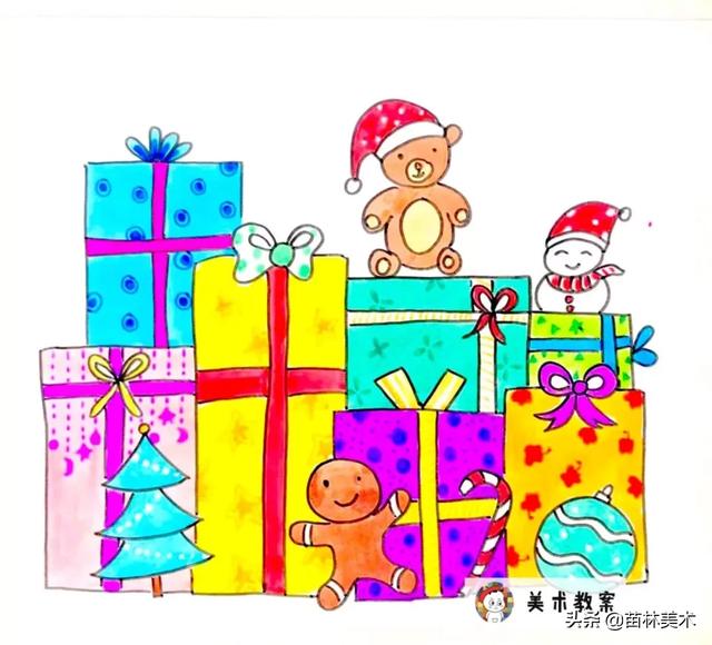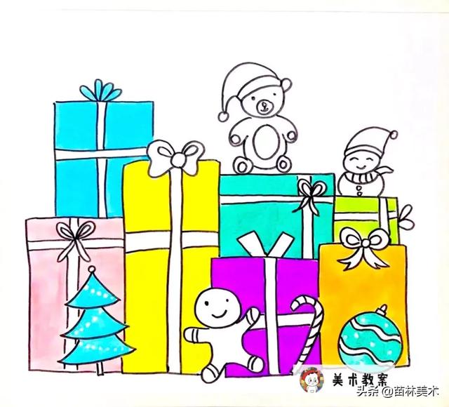 4、用马克笔中的浅色系给圣诞礼物上色。