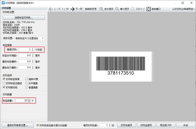 条码制作完成,点击软件上方的“打印预览”,设置标签排版和打印数量,没有问题就可以开始打印啦!