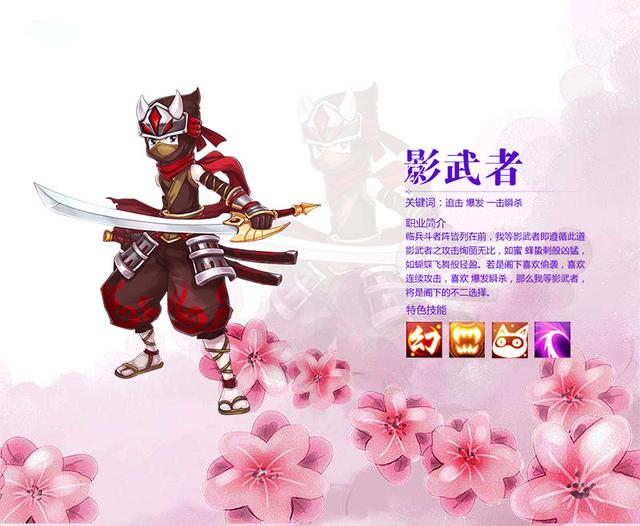 影舞者是唯一具有男影武者和女影武者两种性别可以选择的角色。影武者之进攻绚丽多彩无比,如蜜蜂蛰刺般凶猛,如蝴蝶飞舞般轻柔。若是阁下喜爱偷袭,喜爱连续进攻,喜爱爆发瞬杀,那么我等影武者,将是阁下的不二之选。