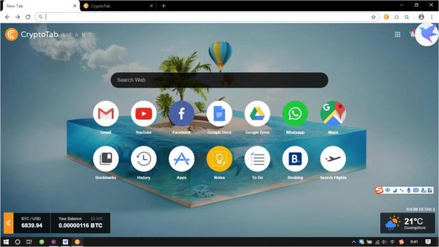 看样子只能放弃了挖比特币,或我的电脑。闲游中发现此浏览器主界面中有有Gmail,非死不可,古狗地图/网盘,YouTube等图标,逐一点击。