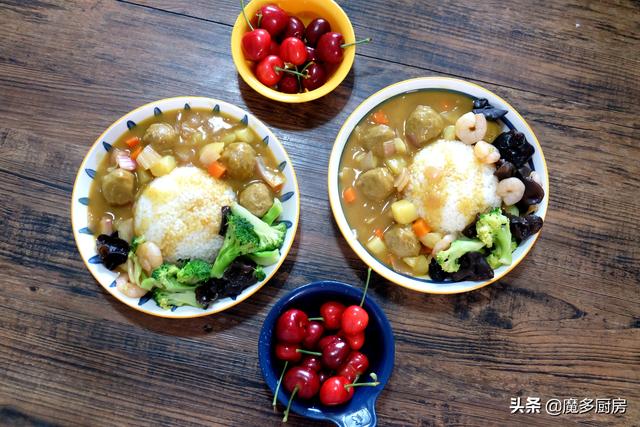 这样的盖饭安排,好吃又方便,咖喱汤汁可以多一些, 孩子们喜欢用咖喱汤汁拌米饭,每次都能吃一大盘。一起来看看详细的做法吧!