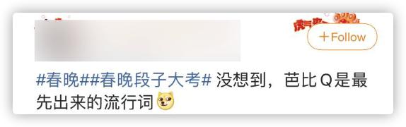 起初春晚播出前,网友们还在猜测春晚出现的第一个流行词是哪个,没想到居然会是“芭比Q(BBQ)”,确实还有些令人意外。