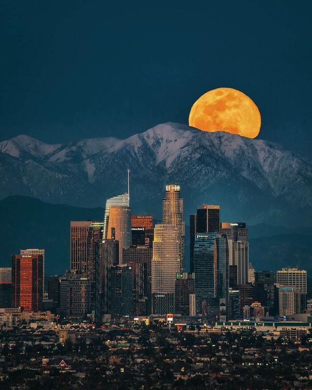 洛杉矶上空的月落