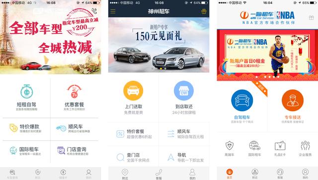 在此不得不说三者支付的差异,首汽租车引导用户进行门店支付,一嗨租车供用户自行选择在线支付或门店支付(预想用户门店支付较多),而神州租车需要至少支付部分预付订单,一方面检验用户成功订单的有效性,另一方面企业能提前收到相应的预付款,便于企业资金周转。