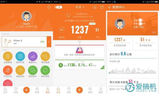 5.语音提示:切换功能有语音提示,在每次运动结束还会语音播报运动时间、里程、步数、消耗卡路里情况。运动结束想知道自己的运动情况绎美Primo5会告诉你。