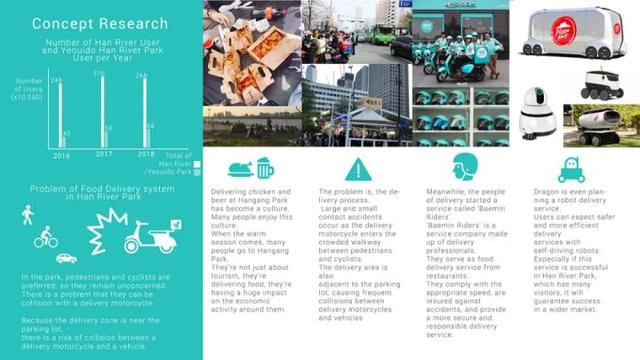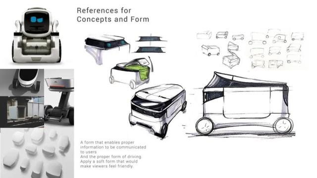 一款弥补物流行业劳动力短缺的配送机器人概念设计。它具有标志性的面孔和友好的设计,并且意识到了人们喜爱的设计,就像抚摸在城市中行走的宠物的头部一样。我们还考虑了可以处理最大 420 x 320 x 220 行李的功能。