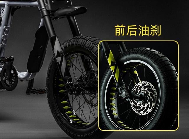 在动力方面,车辆属于新国标电动车,配置的是400W高速电机,爬坡有力,提速迅捷,运行平稳,而且,巴赫super73配置禧玛诺TX50-7速,可以随心所欲的根据需求调速,让骑行更顺心。