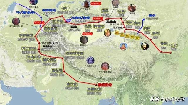 唐朝时环天山山脉行进路线图