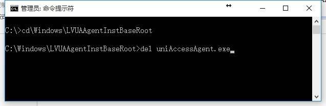 打开安装目录C:WindowsLVUAAgentInstBaseRoot,文件夹为空白,找不到任何文件。这时就需要用到控制台程序了。使用cd命令进入对应文件夹,使用del命令删除文件。