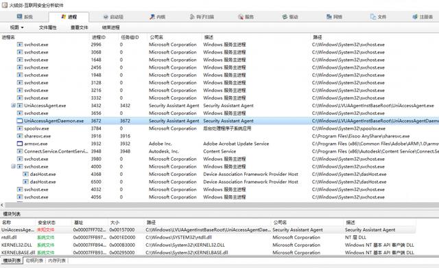 直接结束进程,报错。这时就需要用到第三方进程管理软件,如火绒剑、Geek Uninstaller。打开火绒剑软件进程界面,找到一个Uni开头的进程名,发现软件安装路径为C:WindowsLVUAAgentInstBaseRoot。以路径排序,找到所有运行的进程。依次结束此路径下的所有进程。