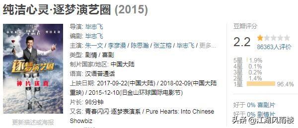 犹记得当初豆瓣最低分是2015年的影片《纯洁心灵·逐梦演艺圈》,也是2分的评分,不过后来被网友刷上去了,变成了2.2分,于是“桂冠”又落到了《女娲传人》的头上。