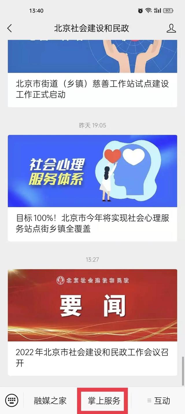 1、点击下方公众号卡片,快捷关注“北京社会建设和民政”微信公众号,或在微信公众号搜索“北京社会建设和民政”,关注并进入。