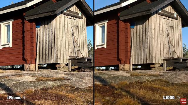 第二张照片仍旧出现了上述的情况,右侧Lumia1020画面依然很模糊,解析力不足,地表和木屋细节都有些模糊。