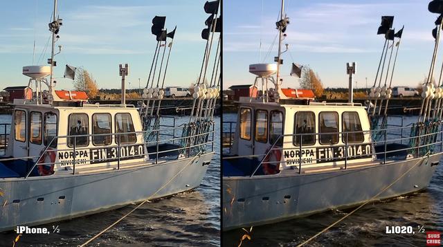 对比可以发现,右侧的Lumia1020画面解析力不足,对比左侧的iPhone13Pro很多细节之处有所不足,比如船只的细节、远处的树木和风景,论照片质量上iPhone13Pro的后置1200万还是很强悍的。
