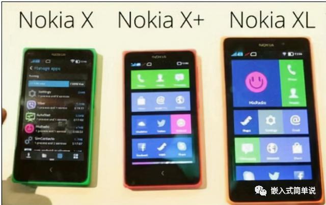 2014年2月24日,诺基亚推出基于安卓系统的Nokia X软件平台和Nokia X系列的第一批三款机型,它们分别是Nokia X、X+、XL,它们都定位低端市场,均采用1GHz的高通200双核,Nokia X运行内存为512MB,Nokia X+和XL运存为768MB。Nokia X和X+屏幕大小为4英寸,XL屏幕大小为5英寸,它们的分辨率均为480×800。外观上,Nokia X和X+一模一样,XL比它们大一些。Nokia X/X+/XL当时的发售价分别为599/699/999,诺基亚想通过这个价位扩展一下低端市场,然而和国产同价位的安卓手机相比,Nokia X系列配置上的劣势还是比较明显。