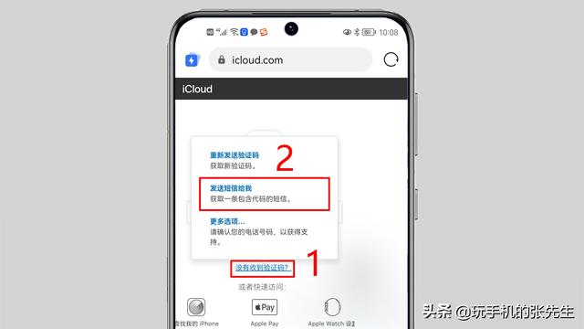 3、在双重认证窗口,点击“没有收到验证码”并选择“发短信给我”。