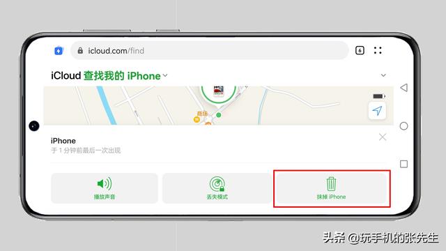 7、在操作菜单中,选择“抹掉iPhone” 。
