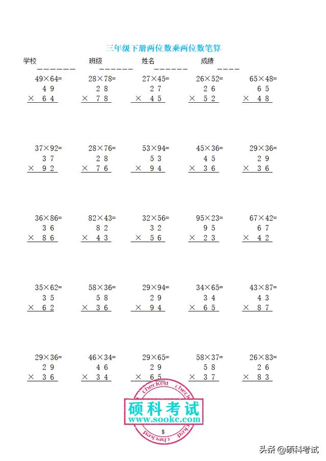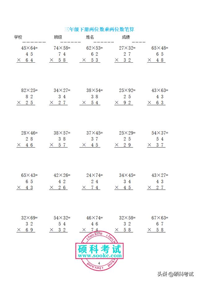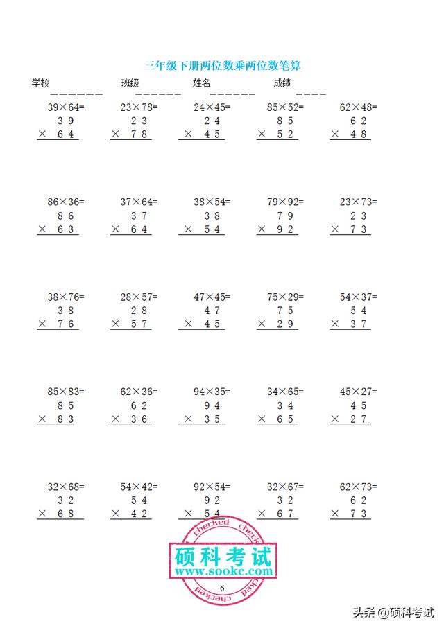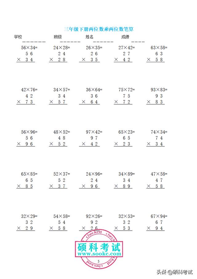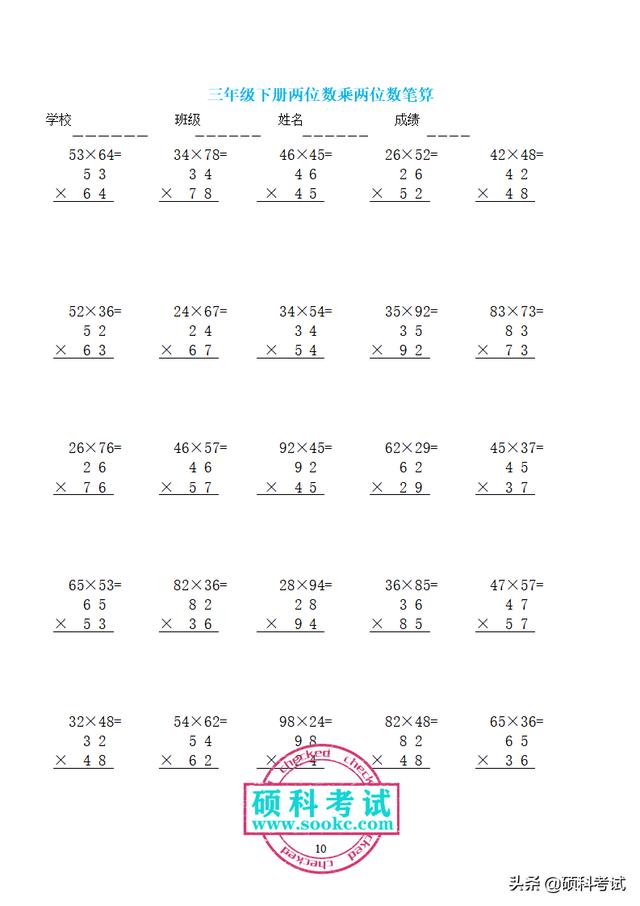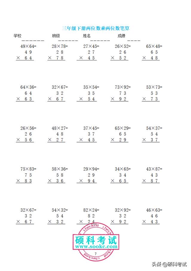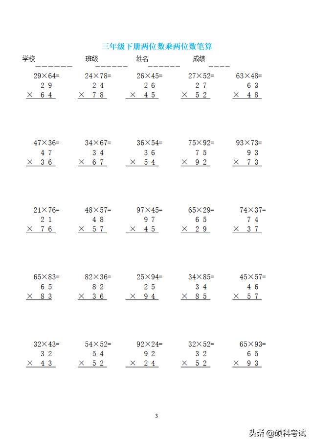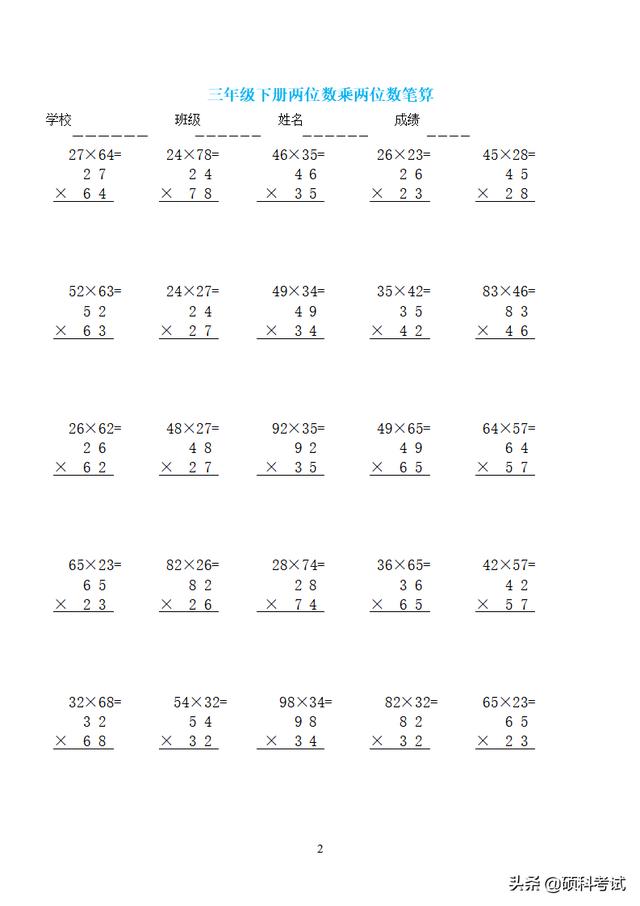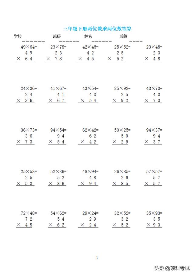 两位数乘两位数的竖式计算方法(三年级数学下册《两位数乘两位数》竖式计算300道) 黄岛废品回收 2022-04-20 03:48:48 更多三年级下册数学试题、试卷 文件打包:点击下载 两位数 您可以还会对下面的文章感兴趣 两位数乘两位数练习题(两位数乘两位数1000道习题) 两位数加减法口算题100道(一年级数学下册(两位数加减一位数、整十数)2300道口算专项训练) 两位数乘两位数ppt课件(一篇PPT帮助孩子学会两位数乘以一位数的乘法) 两位数乘两位数思维导图(小学三年级下册数学思维导图 | 人教版) 两位数的概念(小学数学的七种分类) 两位数除以一位数(数学:两、三位数除以一位数知识点汇总和例题讲解) 两位数乘一位数(两位数连续乘一位数的乘法解题方法和练习(500道)) 两位数乘两位数(居家网课的孩子数学难不难?一幅图画教你两位数乘法,不错题) 相关文章: 衣频道女装(能听能看能玩 优衣库的新APP怎么看都不像是个卖衣服的) ixia测试仪(锐捷交换机获全球SDN认证中心OpenFlow v1.3认证) 中小企业信息公示系统官网(年报全攻略来啦!填报指南,常见错误、不报后果......一文全知!) 中小企业信息查询平台(关于开展2022年度科技型中小企业评价工作的通知) 中小企业平台(企业单位可申报国家中小企业公共服务示范平台) 中小企业信息服务平台(工业和信息化局中小企业公共服务平台) 中小企业信息中心(工信部领导名单) 中小企业信息网官网(中小企业被拖欠款项?来这里登记投诉!)