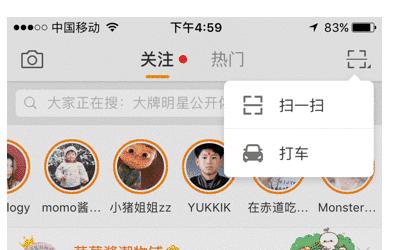 右侧扫一扫不多说,下面的打车功能曾经让我不太理解,莫非是典型用户喜欢边走边刷微博,然后打车也不想中断?后来我发现QQ,微博,微信,支付宝,58同城,360……各种主流应用都有打车功能,原来是去年滴滴与400多家APP合作开通打车功能。这个应该是主要因素,不中断用户使用这点也有考量吧,结合发现中的同城,房产,美食等生活化分类,明白了微博对于随时随地的解释,生活的方方面面。