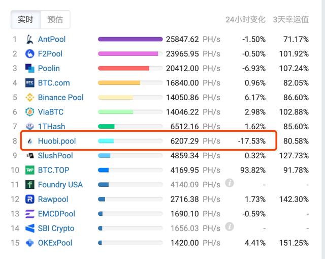 或受该消息影响,火币矿池的比特币算力占比出现暴跌。据BTC.com数据显示,24小时火币矿池算力下跌幅度达17.53%。