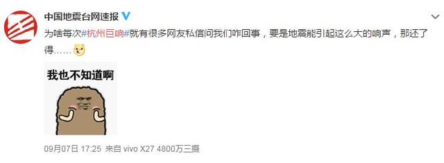 虽然有网友认为杭州地震了,然而省地震局回应说:没有地震。