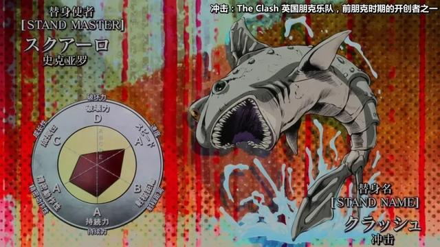 这个替身的能力其实很厉害,形状像鲨鱼,移动速度是瞬移,但是缺点就是每一次移动的距离有限,另外破坏力比较低,咬了半天小飞机的脖子都没彻底干掉小飞机。