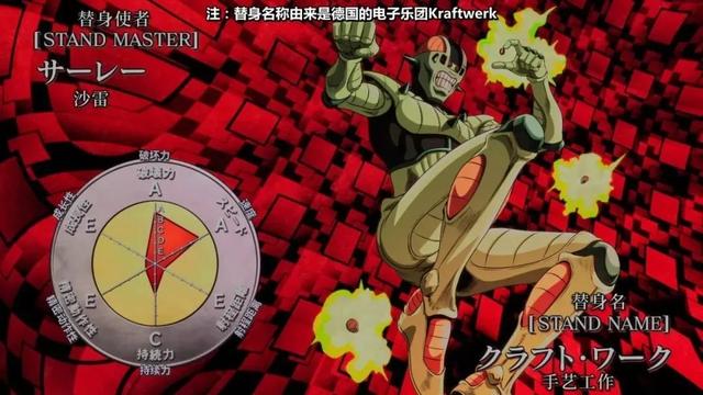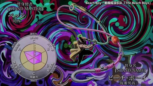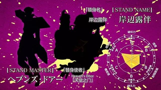 面板属性:破坏力D,速度、射程、持续力B,精密度C,成长A。又是一个成长性的替身。
