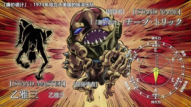 面板属性,射程距离B,持久力A,其他都是E。可以说,这个替身若是单独出来,真的是个超级废材的替身,要划归到最弱替身的行列中了。但是这个舌头还能伸长,握住匕首之类的,这着实有点恶心。
