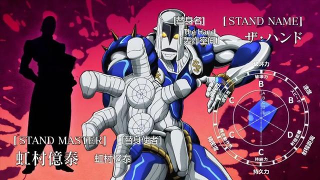 替身人型,拥有用右手消去空间及空间内物体的能力,除了作为攻击敌人之外,也可运用于瞬间移动物体。