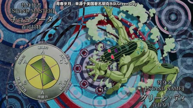 面板属性,破坏力A,速度A,射程E,持久力C,精密度E,成长性E。破坏力和速度竟然都是A,还是个正面打架的类型,而且这个替身的能力很有趣。