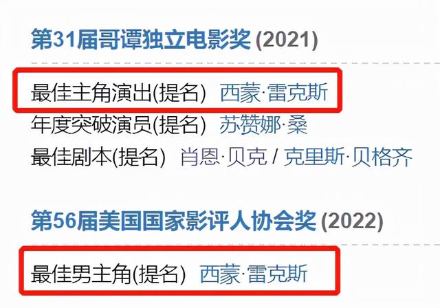 男主角也在一些奖项中获得提名。
