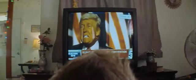 电视上,特朗普兴致昂扬地许诺美国梦。