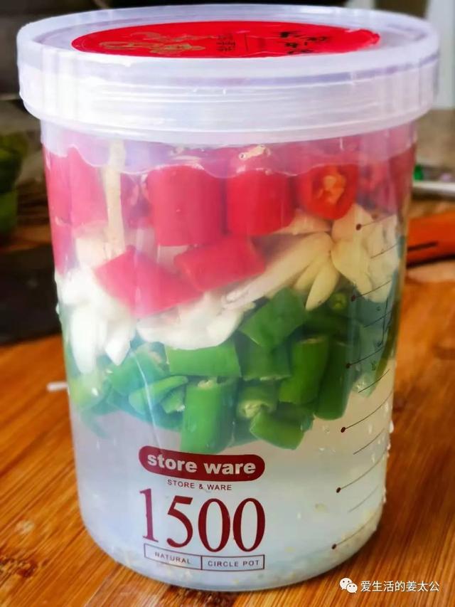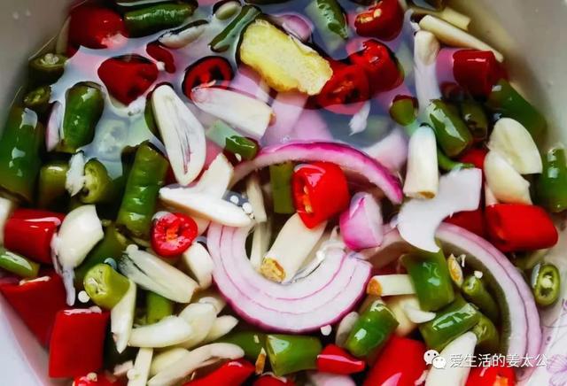 回到家就立马尝试用白醋腌辣椒、蒜片、洋葱,为了颜色好看,又增加了美人椒,口感还真不错,不过我还增加了一些冰糖和姜片。