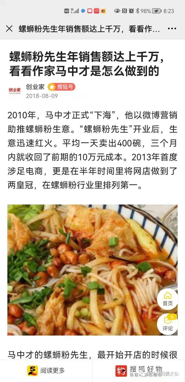 读完这本书后认识了老板马中才,80后,得过全国作文大赛一等奖,比韩寒晚了几届,再后来小马做起了螺蛳粉的生意,有了自己的品牌《螺蛳粉先生