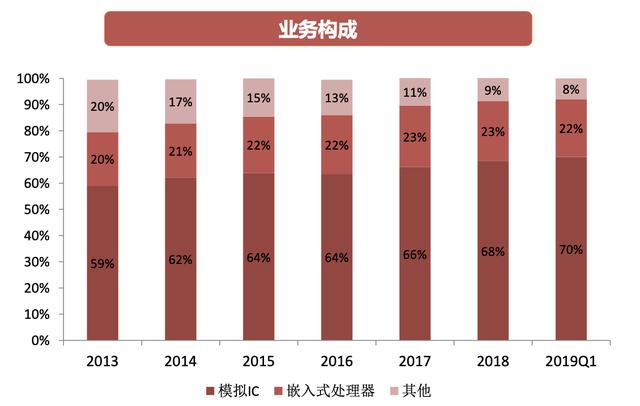 - 3、这两种半导体产品的制造技术和生产设备的寿命较长。比如,模拟芯片的产品生命周期可高 达30年,这能够保证公司长期收入和投资回报的稳定性。
