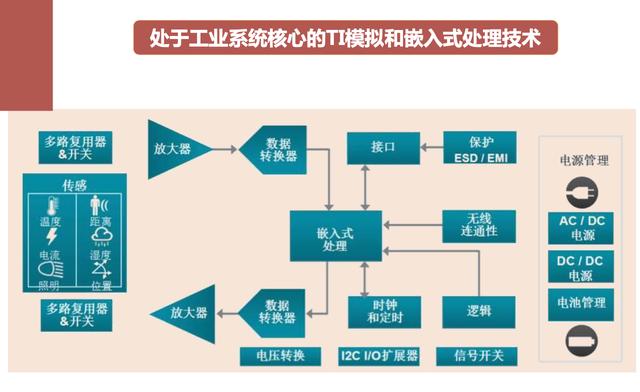 - 2. 完整的产业线覆盖。工业系统的覆盖面很广,组成又五花八门,因此拥有十万余种产品的TI,涵盖到 从处理器、微控制器、无线、到ADC/DAC的所有产 品,更能为客户全方位的解决需求。