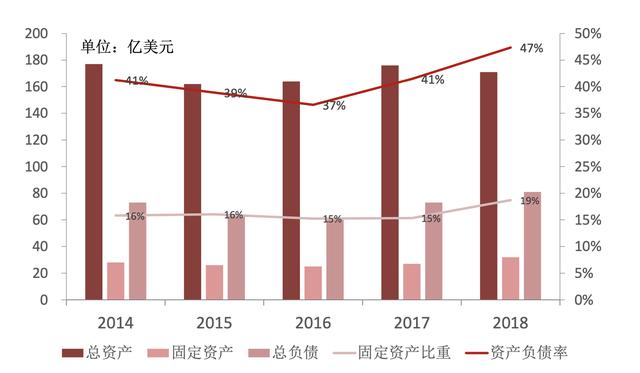 固定资产占总资产的比重历年来不超过20%。2018年,公司固定资产占总资产的比重为 18.6%,资产负债率为47.5%。