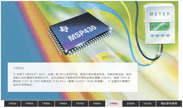 1996 年德州仪器采用更加先进的技术,在单芯片上集成了 1.25 亿个晶体管,从而制造出高性能、低功耗的处理器,为微处理器行业指明了发展方向。1996 年公司开始全方位转型,专注于信号处理市场。1997 年德州仪器推出业界功耗最低的芯片 TMS320C55xDSP 芯片,为便携应用多媒体建立了基础。