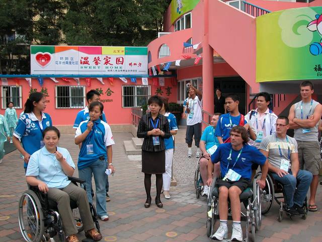 2008年在温馨家园,李楠向各国残疾人运动员介绍中国残疾人事业的发展。
