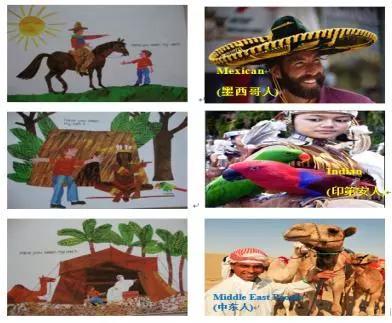 绘本图片中穿着各地传统服饰的人,他们所处的环境也是各地典型的地理环境,富有地方色彩的各种动物,让学生不仅仅是read the word, 更是read the world。