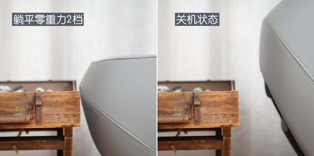 在按摩椅打开的时候,躺平到最低,离墙最近距离就是零重力二档的时候,与关机状态完全直立的按摩椅靠背离墙距离比较如下