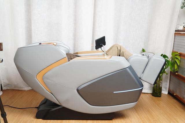 看下动图,在躺下的时候,按摩椅是会往前滑动的,而并不是直接往后躺