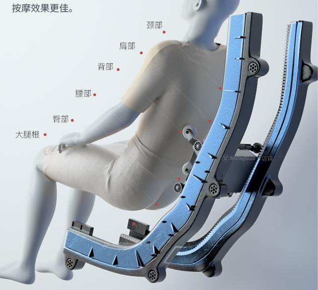 125cm的导轨,也只能按摩到肩背腰臀的部位,加长到140cm之后,就可以覆盖颈部和大腿根部了,足足多出来了50%的按摩面积